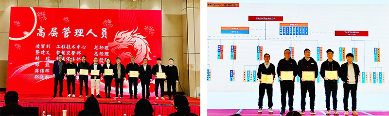 中场休息后,会议发布了2024年度公司组织架构,及对新任命的中高层领导举行了聘任典礼。