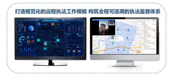 远程执法系统是数字化背景下警务工作模式改革打造的创新应用。针对《行政处罚法》关于双民警路面执法的需求,通过打通公安网移动音视频应用,制定违法行为告知、听取陈述申辩、做出处罚决定等远程执法工作模板,打造规范化的远程执法工作室,将“路面执法”与“远程民警视频执法”进行深度融合,实现视频协同执法,有效缓解警力不足的难题,让执法效力最大化。